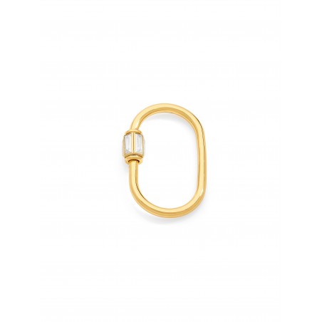 Carabiner, made in 18k gold, set with 4 lab grown diamonds baguette shape onto the screw-in clasp, to be worn anyway you want : wrist, neck...